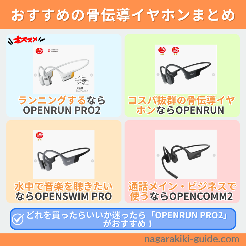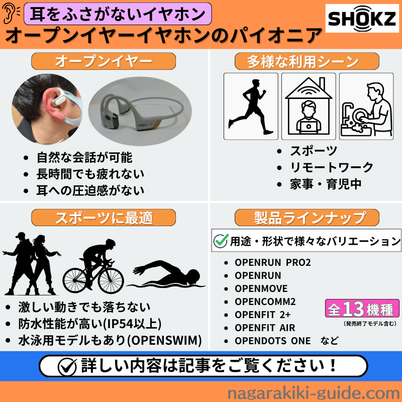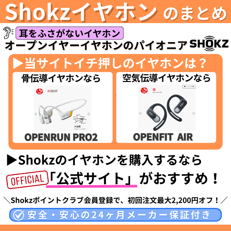 Shokzは骨伝導イヤホンのNo.1メーカーで、技術力やラインナップ、アフターサービスが充実しているからです。
