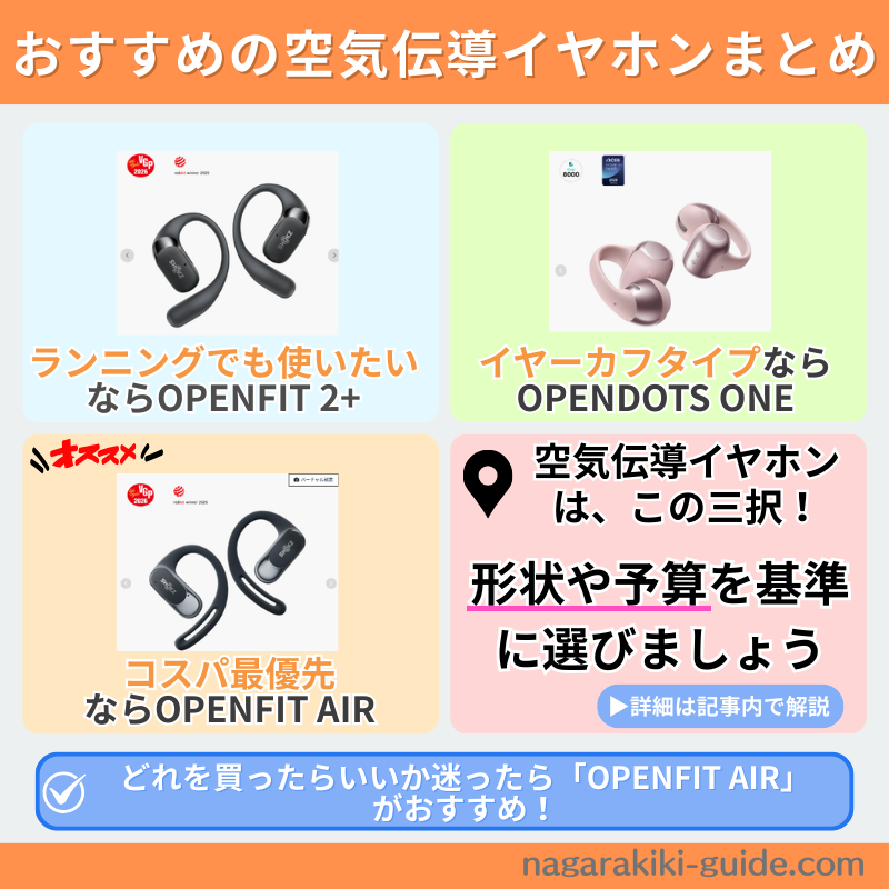 - おすすめの空気伝導イヤホン