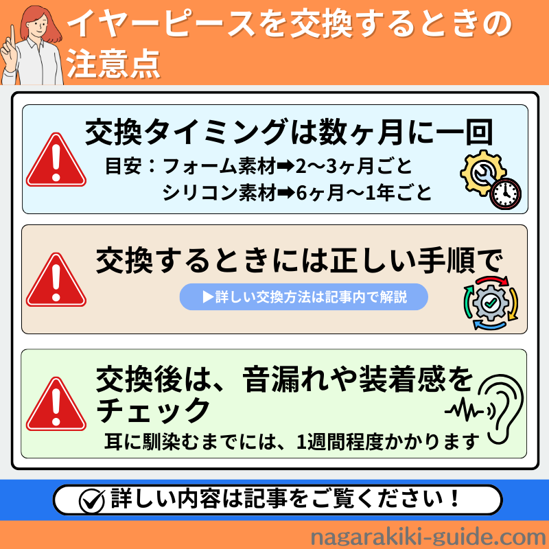 - イヤーピースの交換頻度やメンテナンス方法