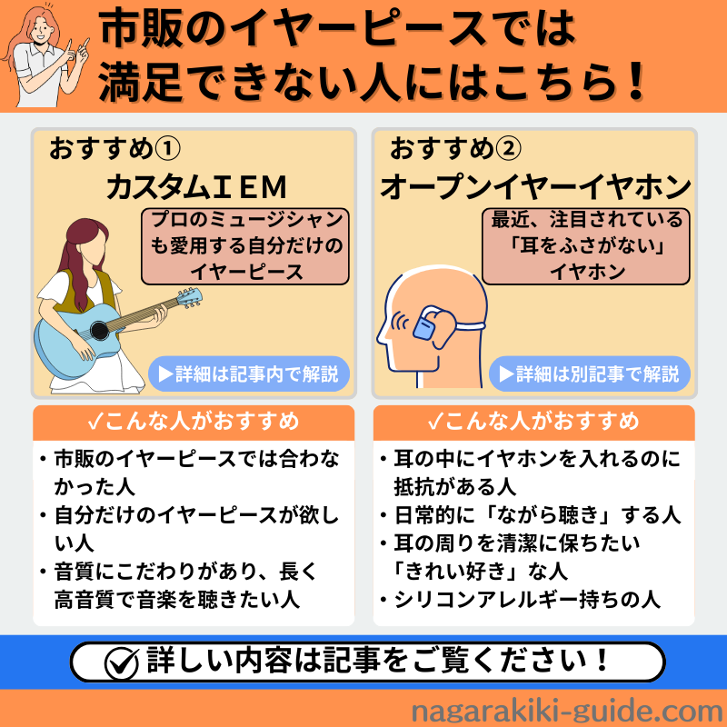 市販のイヤーピースに満足できない人には次の2つの方法がおすすめです。